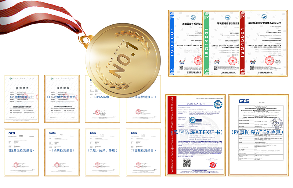 產(chǎn)品經(jīng)過(guò)相關(guān)機(jī)構(gòu)檢測(cè),具備歐盟防爆ATEX證書、歐盟防爆ATEX報(bào)告、防爆檢測(cè)報(bào)告(國(guó)內(nèi))、耐火檢測(cè)報(bào)告(4小時(shí))、歐盟CE認(rèn)證、軟件注冊(cè)權(quán)、箱體外殼防護(hù)等級(jí)IP65檢測(cè)報(bào)告、防滲透測(cè)試報(bào)告、防腐蝕測(cè)試報(bào)告、箱體隔熱保溫性能檢測(cè)報(bào)告、箱體抗震性能試驗(yàn)報(bào)告、雪載荷測(cè)試報(bào)告、靜載荷測(cè)試報(bào)告、抗風(fēng)測(cè)試報(bào)告等。